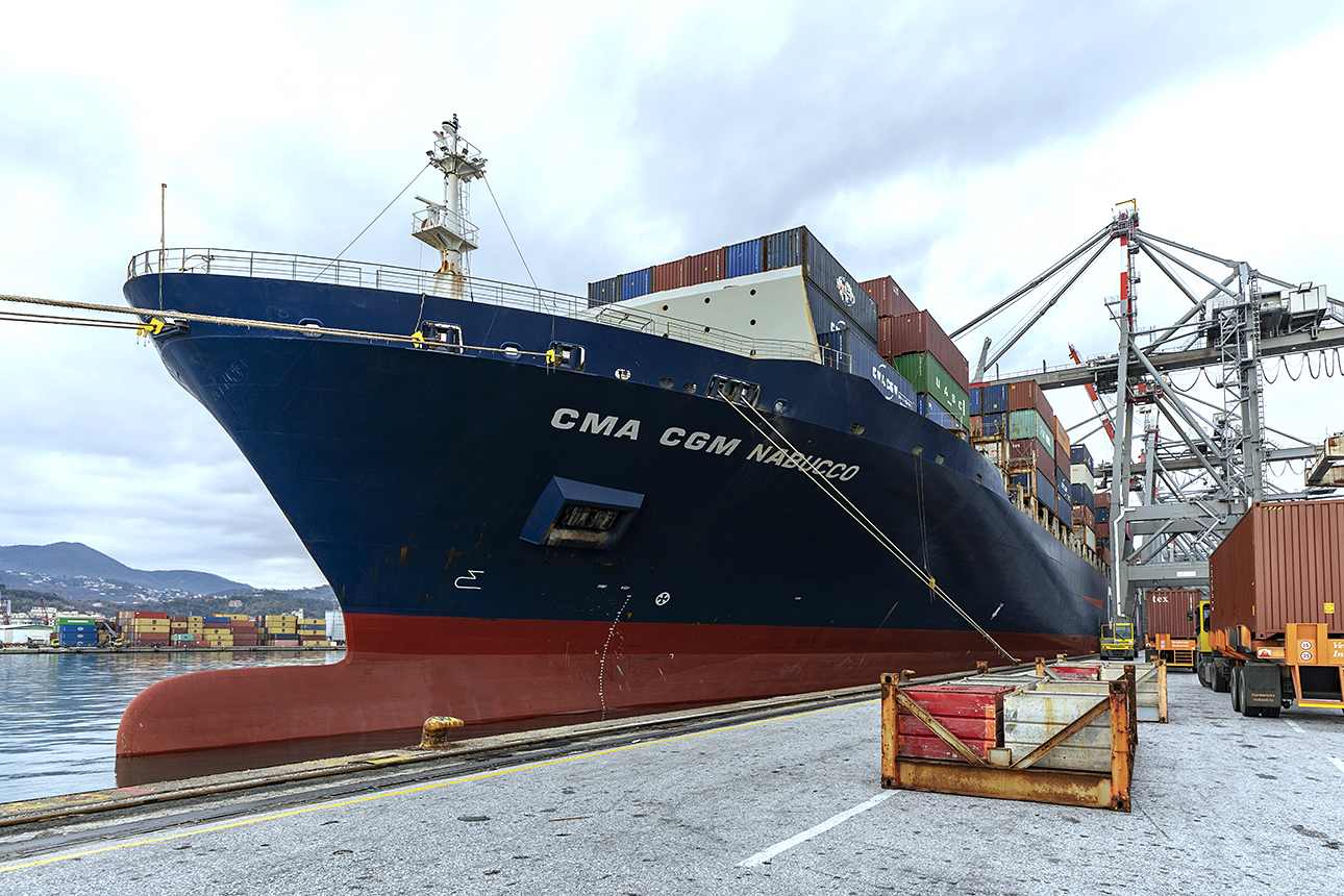 Last week Contship Italia’s La Spezia Container Terminal welcomed the CMA CGM Nabucco, making her maiden call on the revamped Med-US East Coast service jointly managed by the Ocean Alliance and THE Alliance