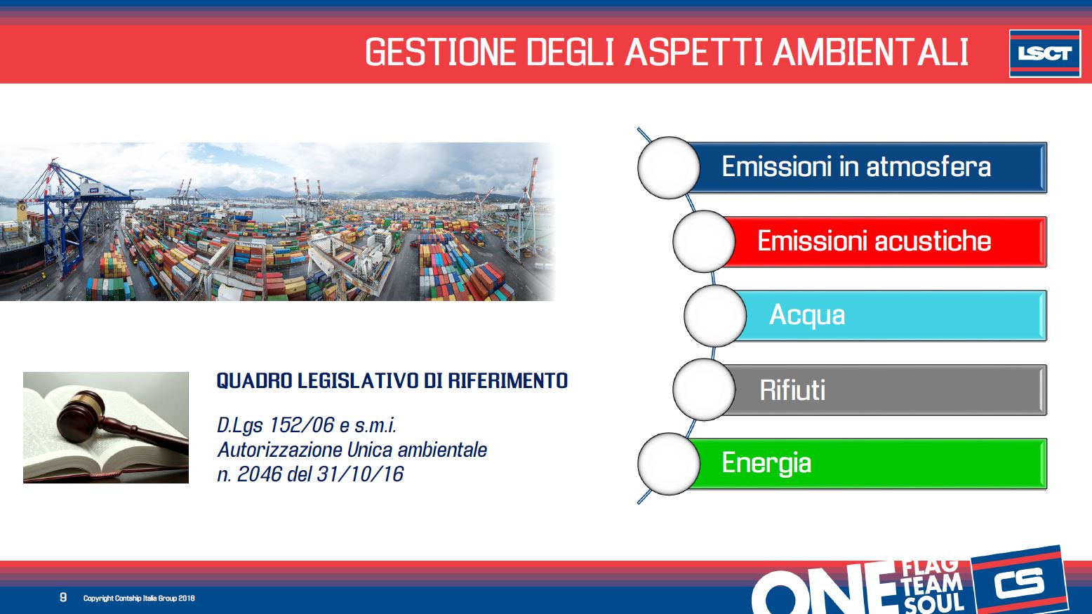 The growing need to integrate these sustainability and efficiency practices, which aren’t necessarily contrasting, but rather complementary, pushed the terminal towards developing and implementing an integrated Quality, Safety and Environment system, which is active since 2009. Furthermore, the system embrace ISO 9001, ISO 14002 and OHSAS 19001 standards. Antonio Davide Testi therefore showcased the different projects and the specific actions that are taking place to better deal with environmental issues such as grenhouse gasses emissions, water and waste cycles, energy consumption and noise emissions.