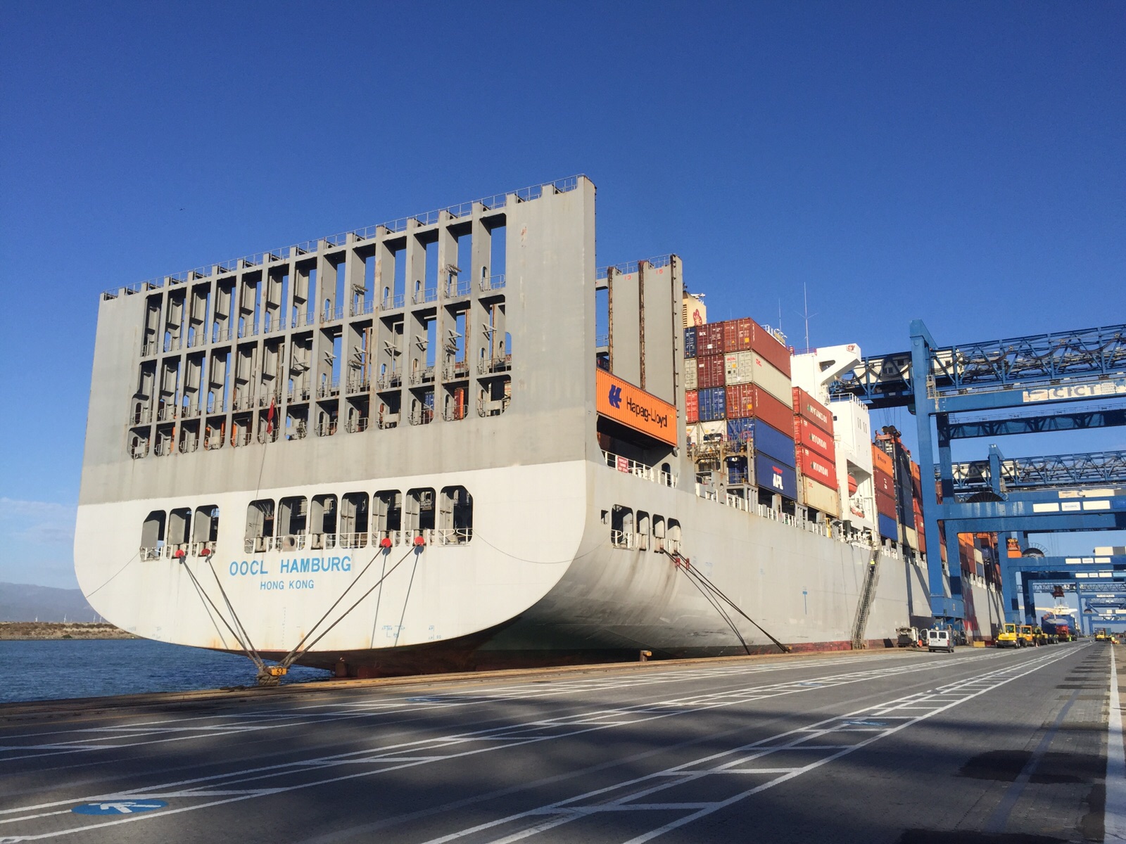 After the m/v OOCL Southampton on August 31st, m/v OOCL Hamburg is now the second maiden call – second in a row by a ship operated by the Hong Kong based carrier. The OOCL program is being completed by the phasing-in in Far East of other two ships of the same size, namely m/v OOCL Washington and m/v OOCL Luxemburg,  which will be calling Cagliari in the near future in the AZX west bound rotation.