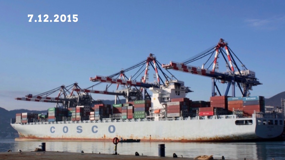 On Monday, December 7th, this is in evidence, as ships operated by COSCO Container Lines ltd., Shanghai, are under operation on both coasts of Italy – the Tyrrenian and the Adriatic.