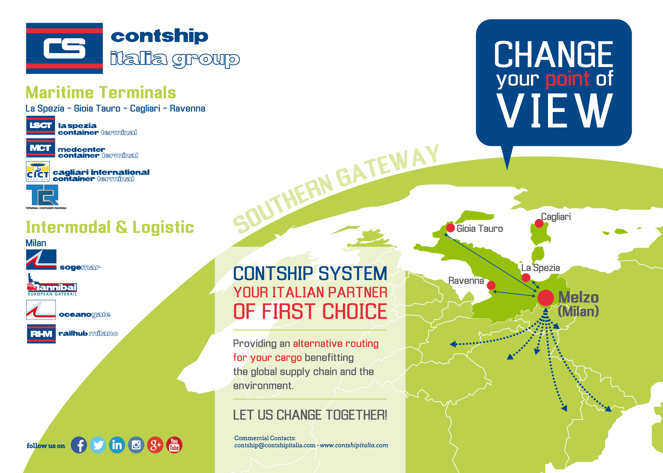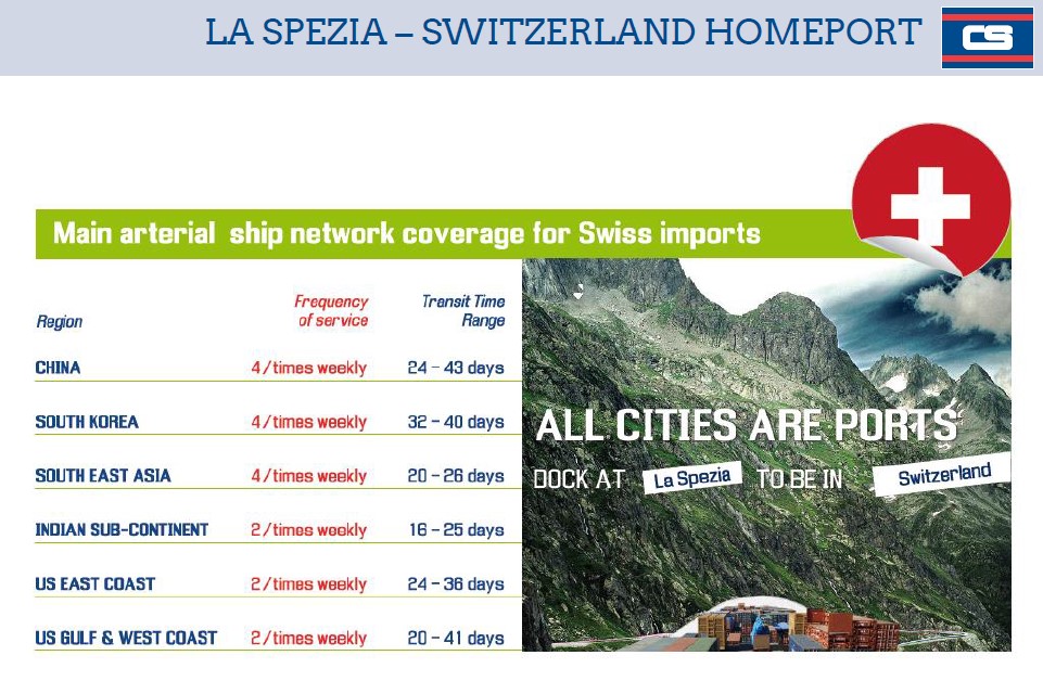 Among the speakers of the event representatives of Port Authorities, Associations, Public Institutions and Supply Chain Players. Contship Italia will be present with Sebastiano Grasso (Vice President – Intermodal & Logistics), Marco Simonetti (Vice President – Maritime Terminals) and Daniele Testi (Head of Marketing & Corporate Communication) to showcase Contship integrated offer, supporting Swiss shippers with extended homeport and southern gateway opportunities.