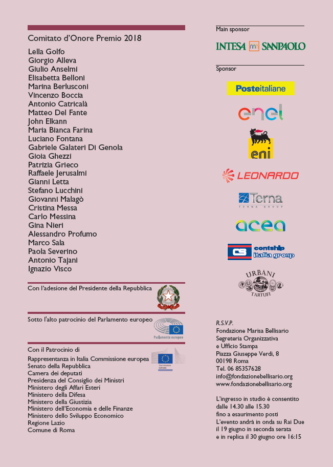 The ceremony will take place in Rome, at the Rai Auditorium of the Foro Italico in Piazza Lauro de Bosis. The event will then be aired on national TV (Rai Due) in the late evening of June 19th.