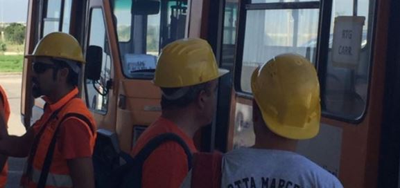 Above photo from the left: Nicola Usai, Daniele Sarigu, Gualtiero Spano, Daniele Garau, Claudio Cossu, Alessandro Secci, Germano Mameli, Massimo Peara, Nicola Doro and Giovanni Saba are just some of the “natives” (the clue is in the family names!) on shift in the yard during their 15 minute lunch break as Nicola Usai and Nicola Doro were just finishing their healthy lunch!!