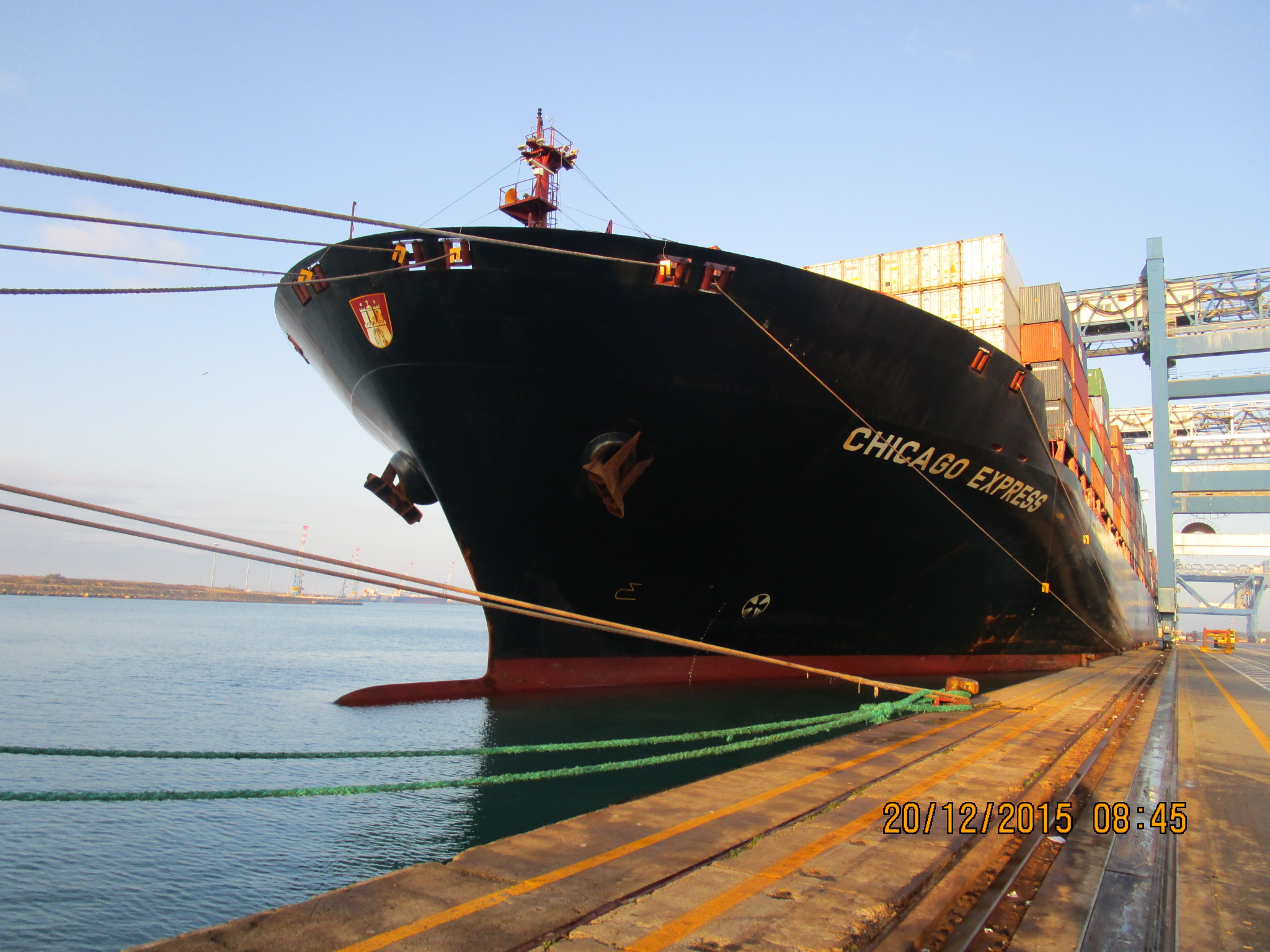 Between December 20th and 21st, m/v Chicago Express and m/v Rio Blackwater called the Contship Sardinian hub for the first time, both deployed in the AZX – the G6 Asia Suez Express service.