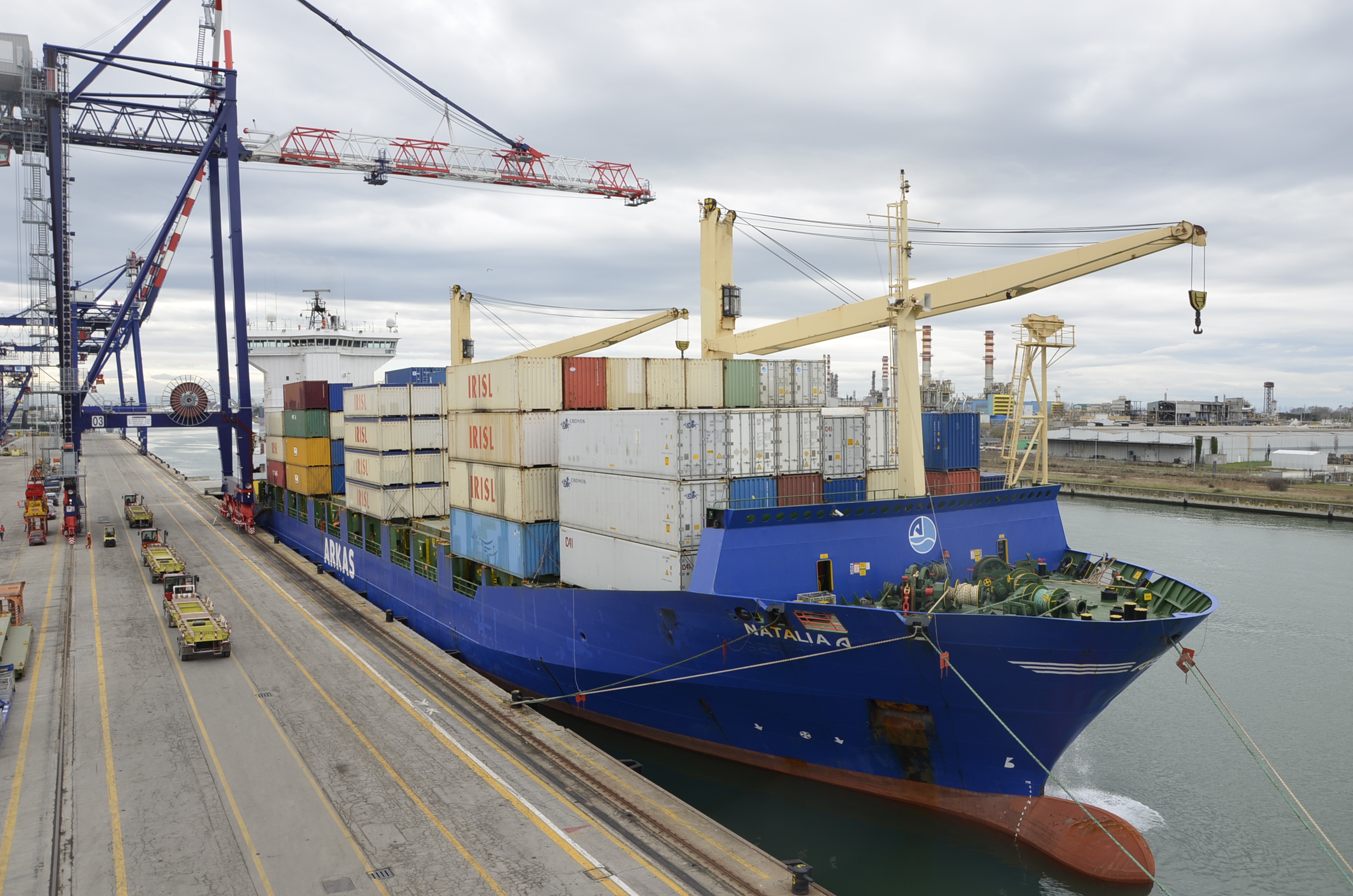 This morning, the Natalia A container ship that belongs to Turkish ARKAS shipping line, docked in Contship Ravenna – the Broström Tankers AB gateway on the Adriatic Sea. The Natalia A is deployed on the ADS service (Adriatic Service) that connects Ravenna with Istanbul, Gemlik, Piraeus, Izmir, Beirut, Mersin, Aleksandria and Lattakia, on a weekly basis.