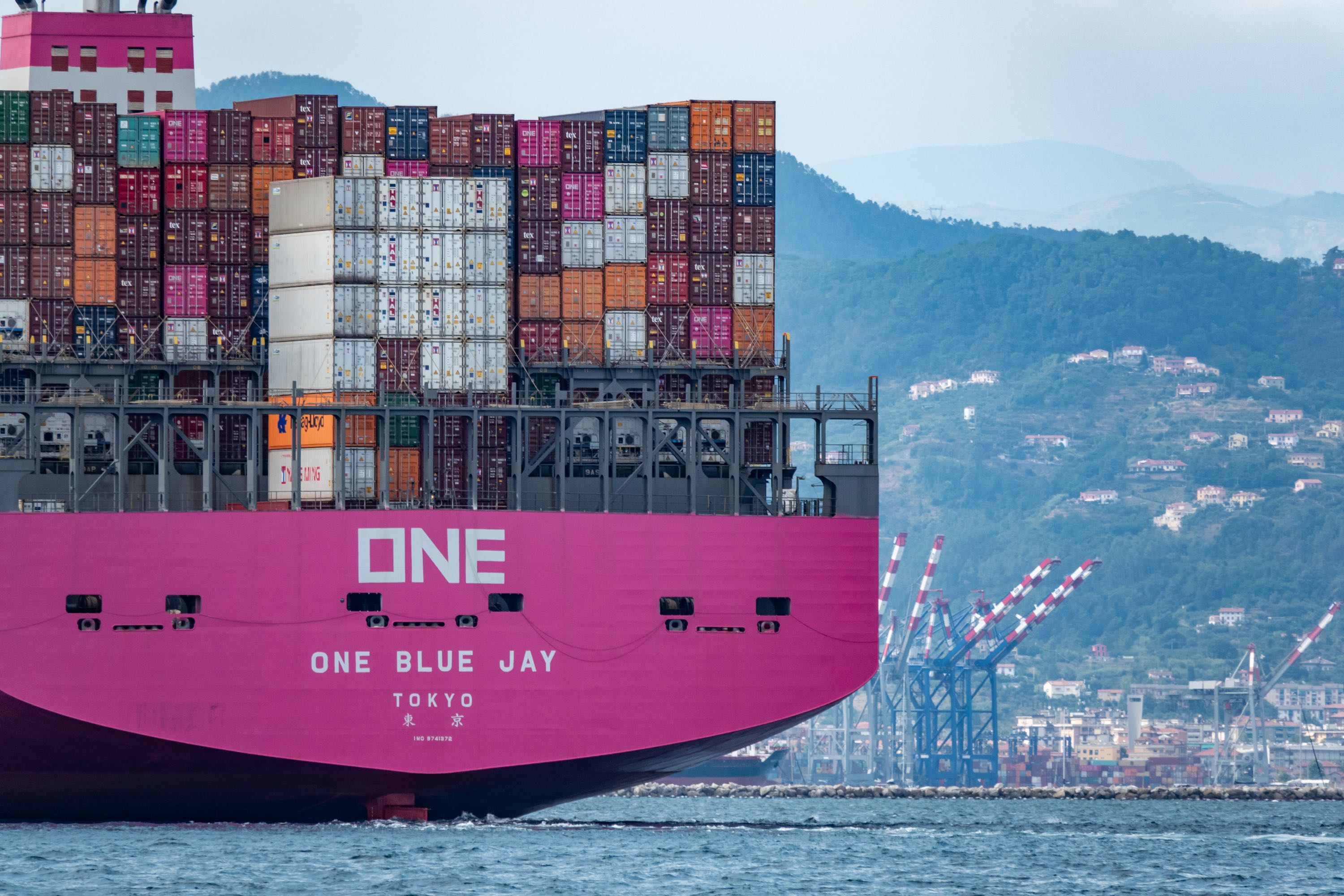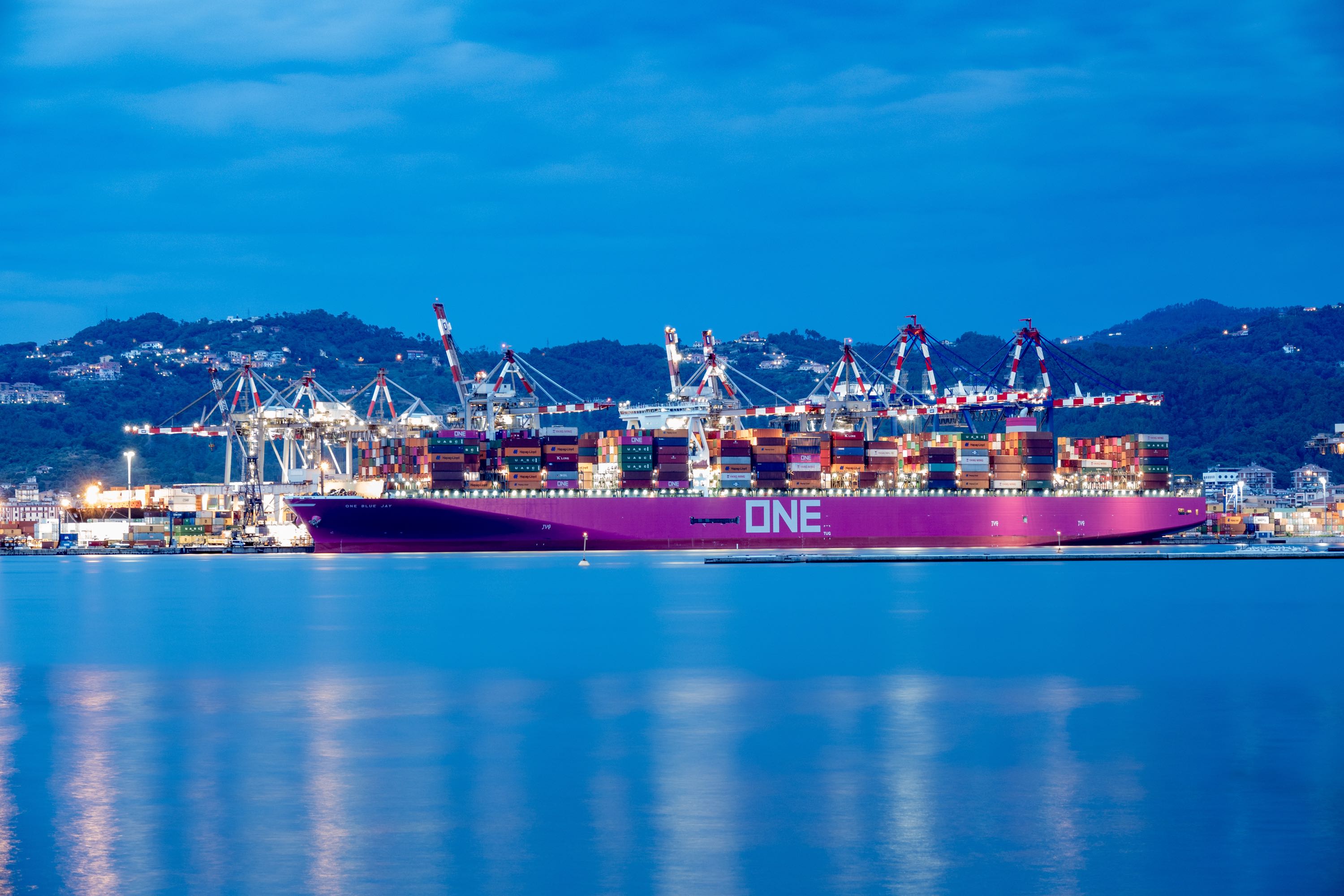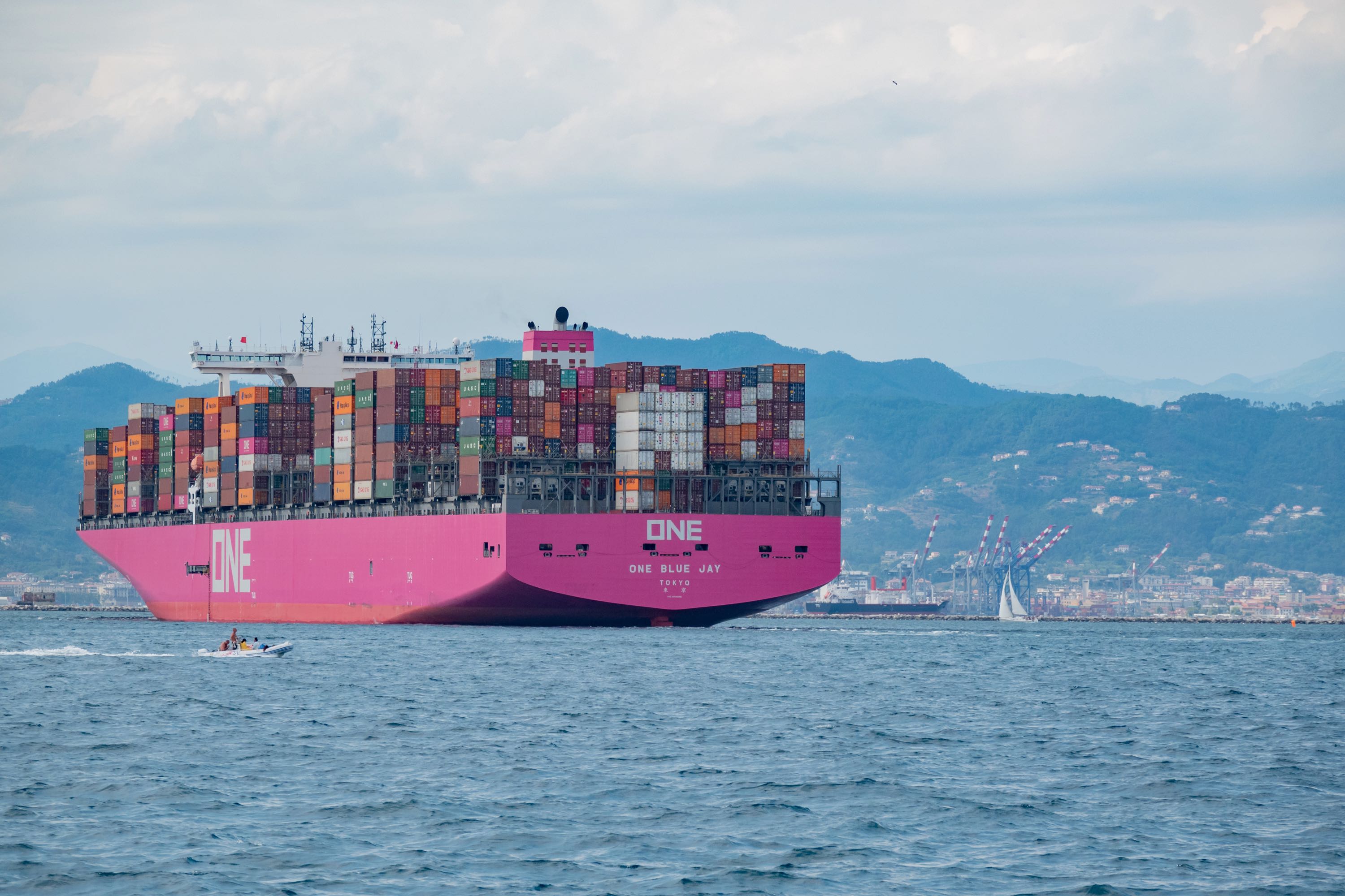 The arrival of the ONE Blue Jay on Sunday afternoon did not go unnoticed, even for those outside of the maritime business. Under sunny skies, with her magenta colored hull, the 364m long ship made her graceful entry alongside Contship Italia’s La Spezia Container Terminal.