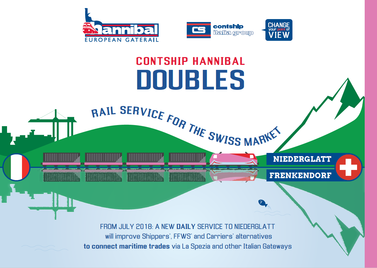 With the additional link to Zurich (Niederglatt), Contship Italia doubles its services covering the Swiss market. The new link between Melzo and Niederglatt features a three-day transit time (A-C with arrival in the morning ) from main Italian Gateways and an A-B transit time to/from intermodal hubs in Melzo and Padova. By expanding its service offering dedicated to continental volumes between Italy and Switzerland, Contship continues to transform the Southern Gateway into a competitive and reliable option for cargo owners, freight forwarders and shipping lines. Hannibal's first link to Basel (Frenkendorf) started in 2013 and has recorded growing demand since then.