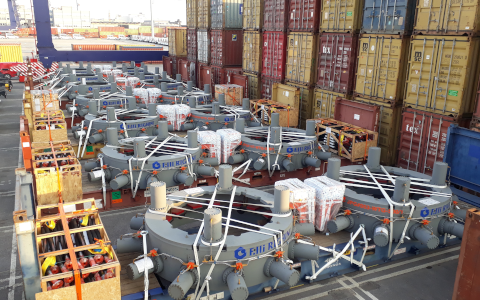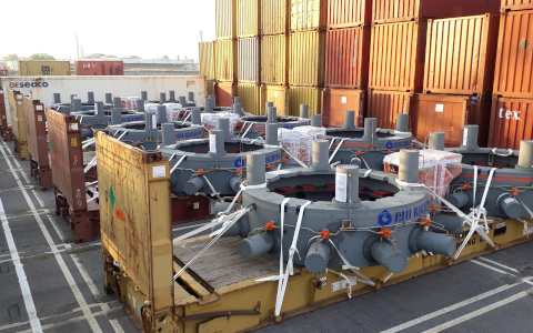 The boarding operations of about 40 Jacket Pile Grippers have been completed in recent days at the Terminal Container Ravenna. The 40 Jacket Pile Grippers are part of a supply of 168 Jacket Pile Grippers, which will be used in an international project for the construction of a wind farm, located off the Scottish coast.