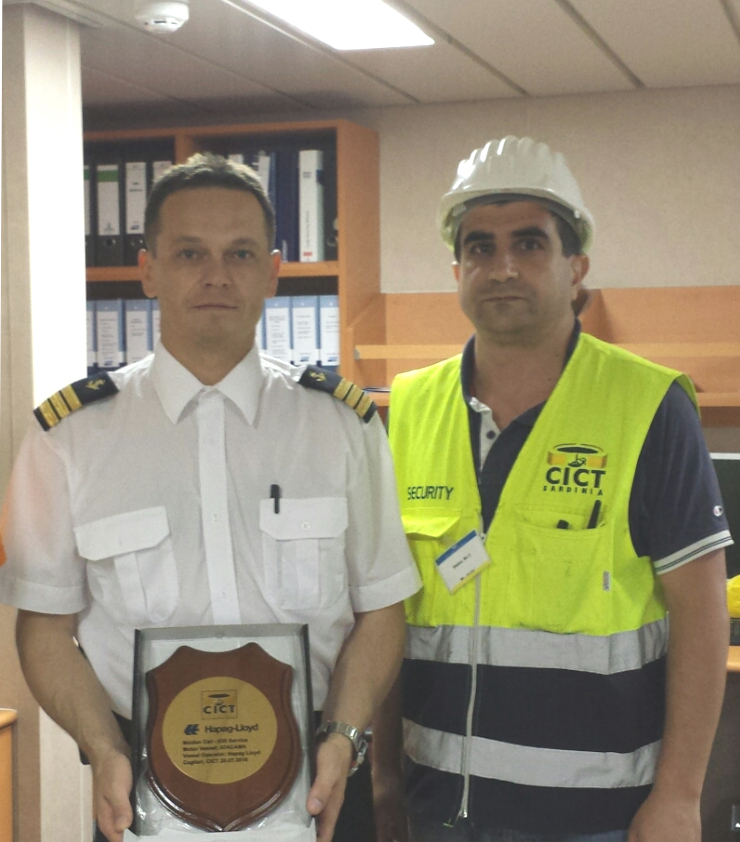 Named after the famed Chilean desert, the ship and its crew were welcomed at the Sardinian hub with the delivery of the traditional crest. Master Mykhaylo Kourov was presented with the memento of the occasion by Maurizio Defrassu, CICT vessel planning team.