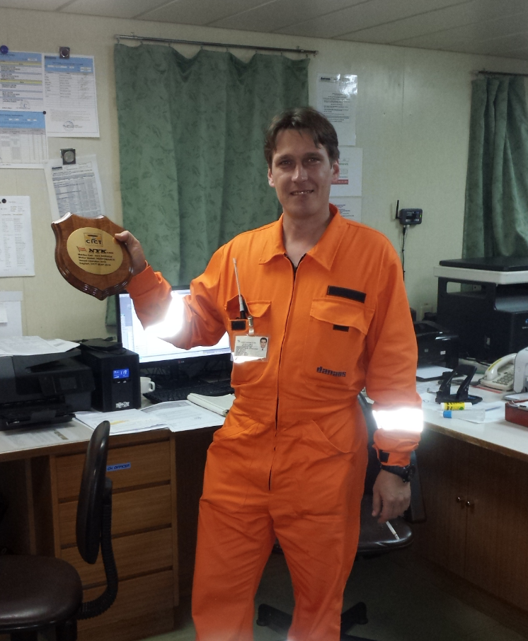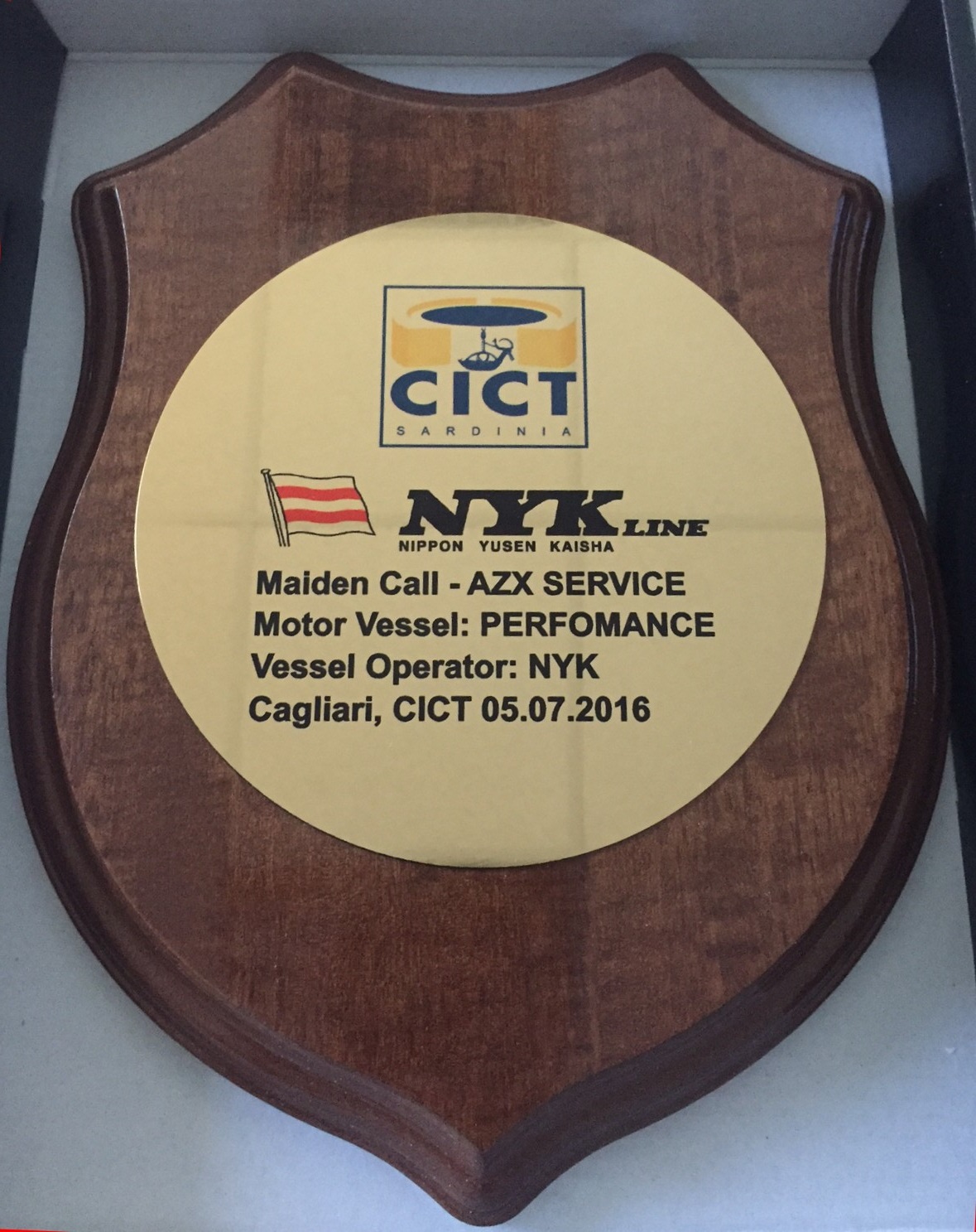Prior to the conclusion of operations the same day, tradition respected as chief officer Glukharev Alexander and fellow crew members were presented with the customized crest on deck. On this occasion, a memento of the welcomed return of NYK operated ships at CICT since 2010, with other units also deployed in the AZX.