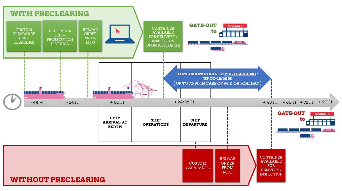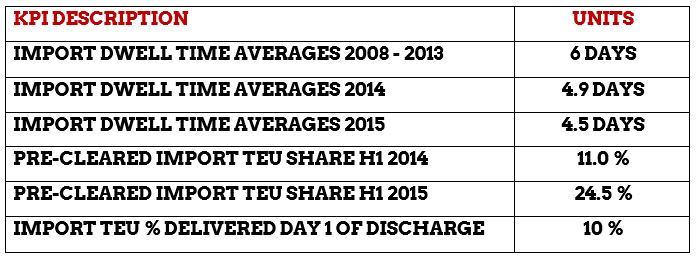 During 2013, the final touches to enable imports containers to be pre-cleared prior to physical ship arrival were put in place by both national and local competent authorities, also supported with a number of trials. Prior to this, the process of clearing imports could only commence after the container was physically discharged from a ship, even if import clearance representatives were in possession of the necessary information and documentation. Go live with “Pre-clearing” commenced in 2014 creating a positive contribution to the on-going reduction in import dwell times.