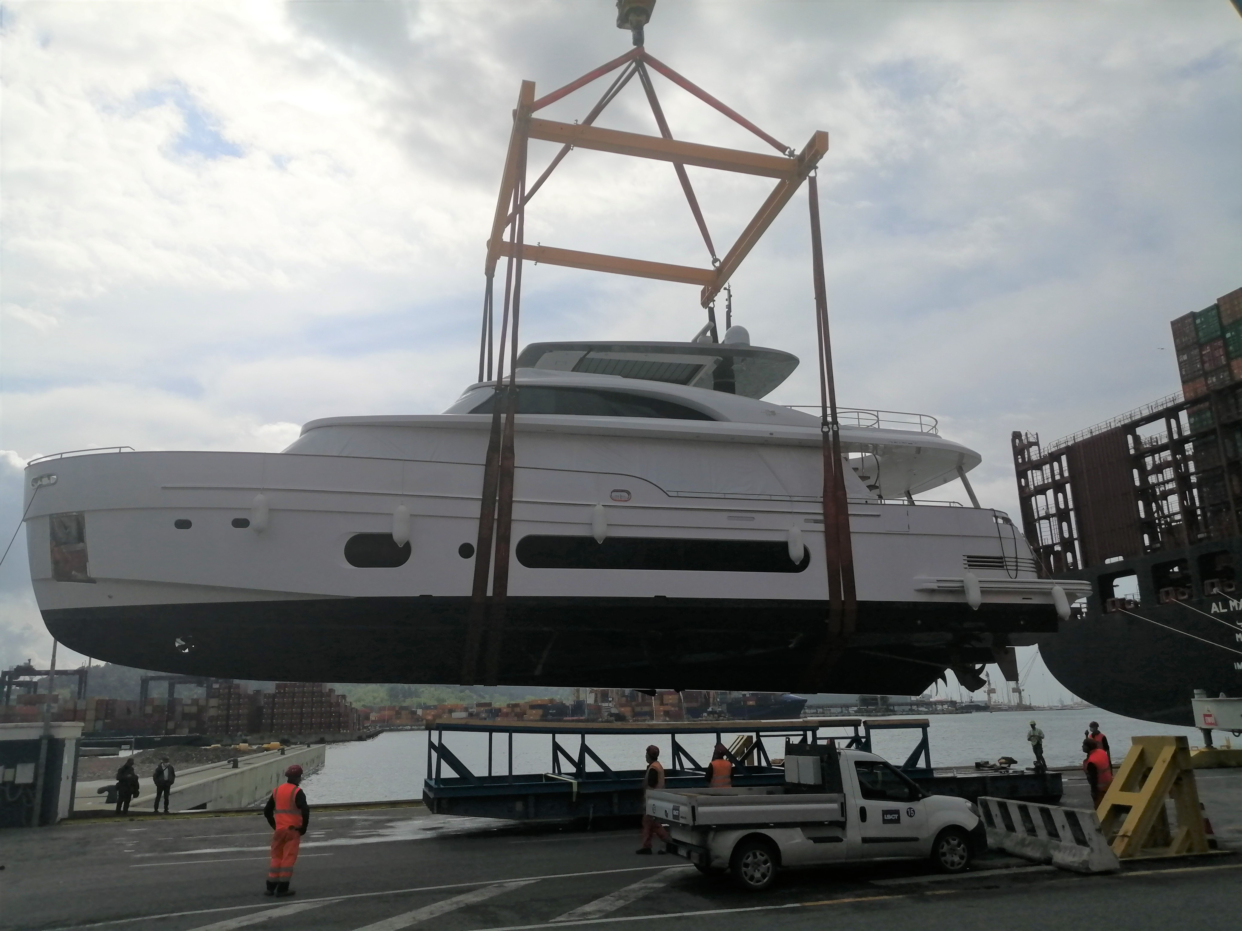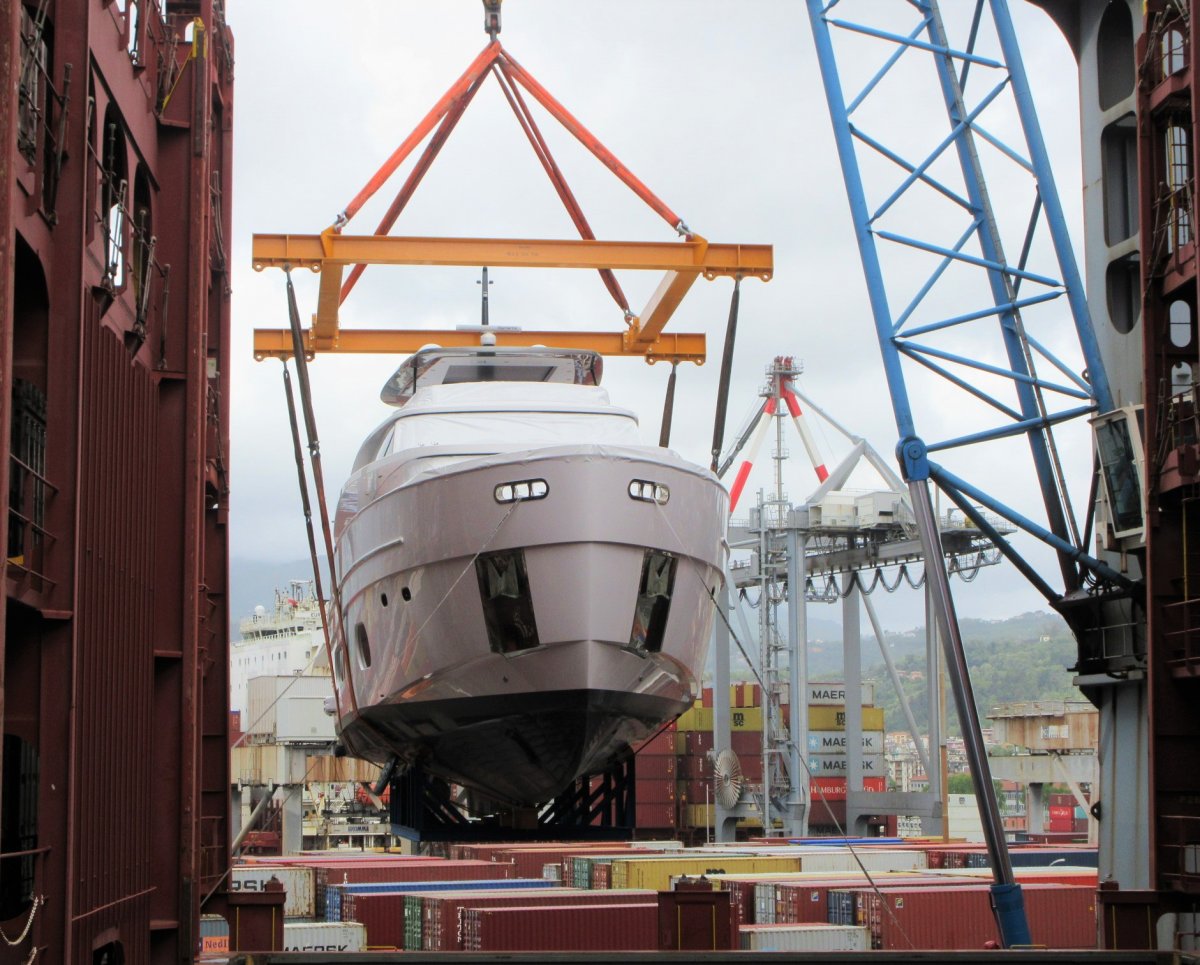 Between 30 April and 2 May 2021 the Break Bulk & General Cargo Team of La Spezia Container Terminal undertook a very delicate operation – the loading of a Magellano yacht built by luxury Italian shipyard Azimut.