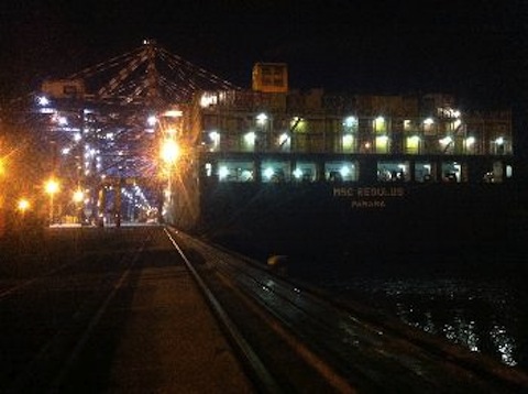 Built in 2012 by Hyundai Heavy Industries, Ulsan, South Korea, MSC Regulus , weighing at141,635 GRT arrived in MCT on March 4th, completing some 2,300 contractual moves, continuing the voyage on March 5th having achieved a REAL OVERALL PRODUCTION RATE (Tot. Moves + Hatch Cover Moves/(Overall Working Time -No MCT Delays)) of 131.10 moves per hour.