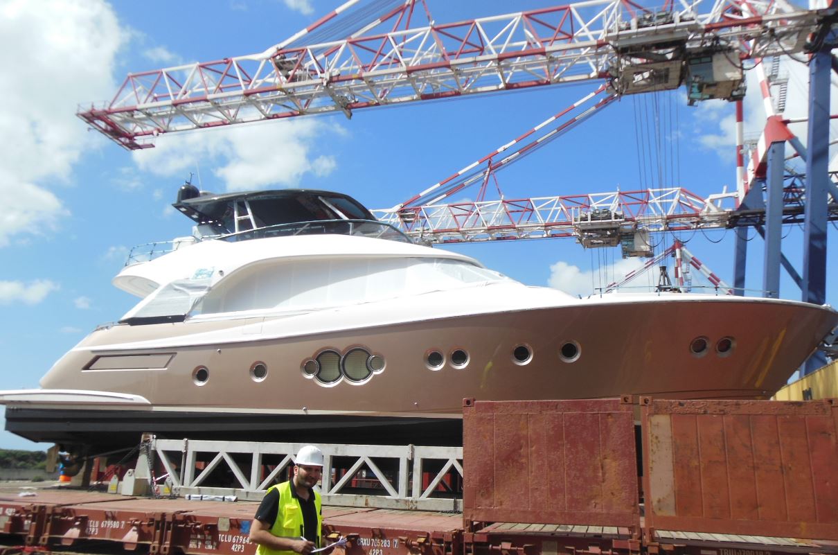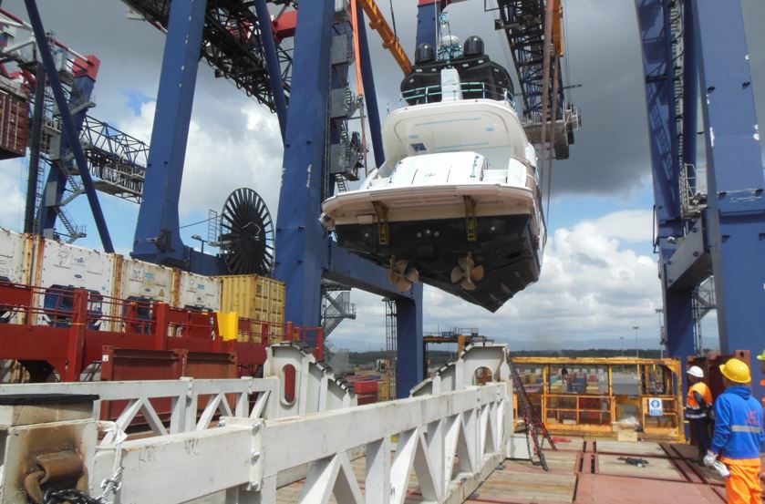 The 2015 “Yacht Season” kicked off during March, since which there have been regular shipments , the latest of which took place on May 22nd with the direct transfer from water to ship of a luxury motor yacht bound for the far off market of Sydney, Australia.