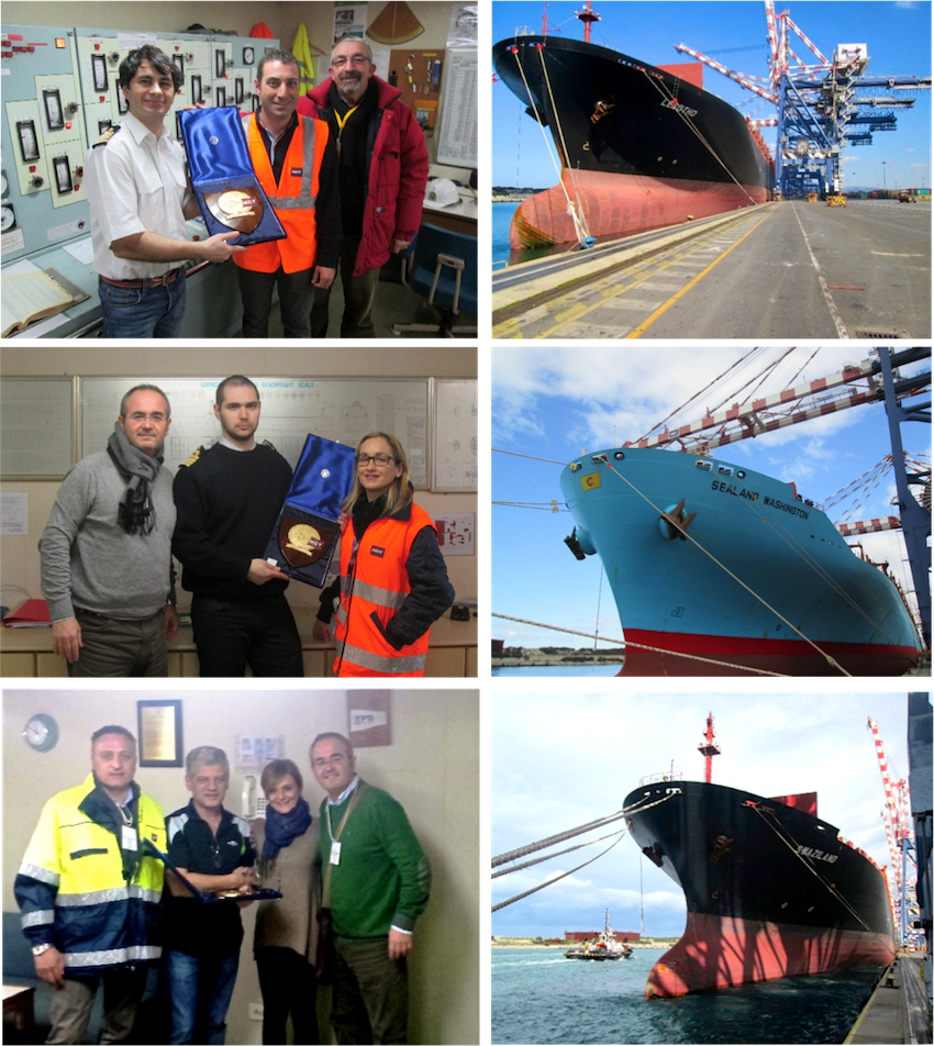 In the collage picture, from top to bottom: Captains Marius LINGURITA, Dmytro RYLSKY and Zhecho Ivanov ANTONOV, being welcomed by Fabio Falò (GSM-AMT local agent) and various members of the MCT Team to mark the occasion.