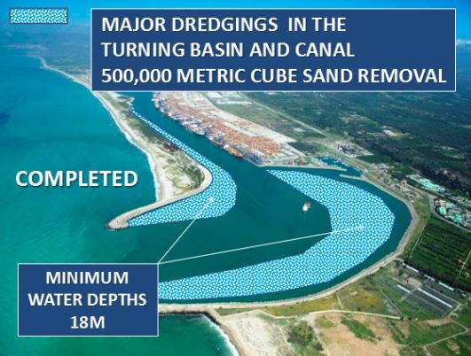 Dredging work completed: positive results and improvements in safety and navigation, as well as deeper operational draft at the berth.