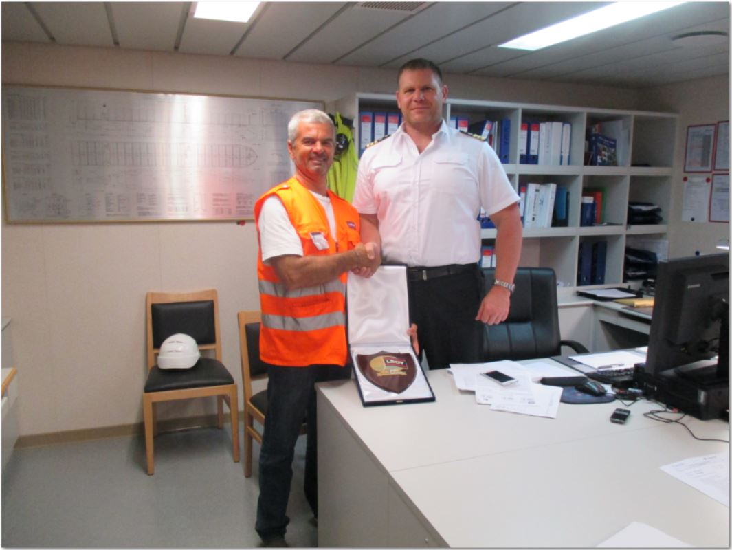 Named after the ninth largest city in Germany, located in the North Rhine-Westphalia region, she was built in 2012 and measures 366m in length, with a gross-tonnage of 142,295t and capable of carrying 13,167 teus. Pictured on the right, receiving the commemorative plaque, is Capt. Peter Plein from LSCT Planner Antonio Soldani.