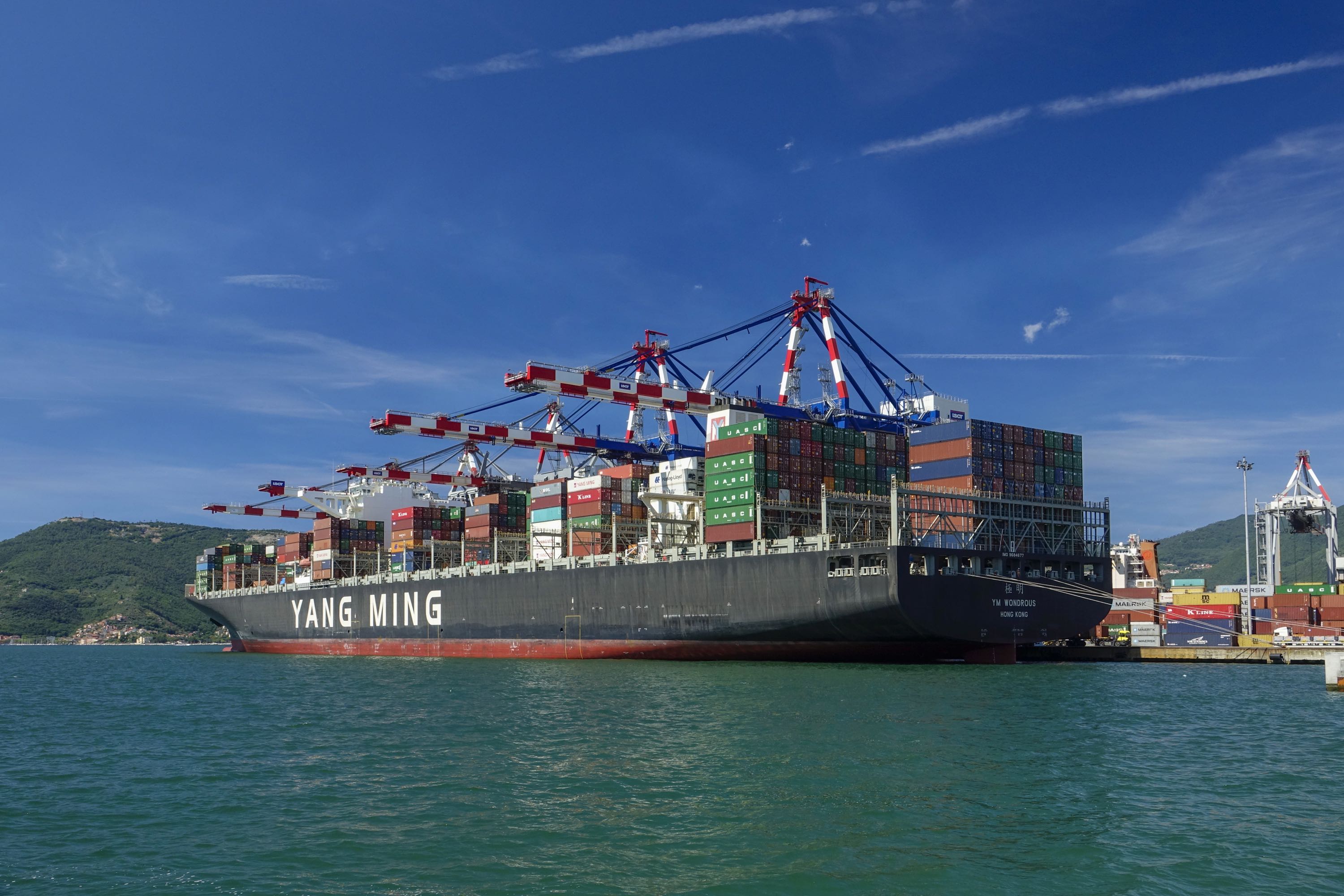 It was a lovely sunny afternoon on the 16th July when the YM Wondrous arrived on time at Contship’s La Spezia Container Terminal. Operated by Yang Ming Line and deployed within the MD2 service of THE Alliance she is one of a series of large container ships for the Taiwanese carrier. Built in 2015 at the Hyundai shipyard in Ulsan, South Korea she measures 368m in length and 51m wide, with a capacity of 14,080 teus including 1,000 reefer plugs and a gross weight of 144,651 tons.