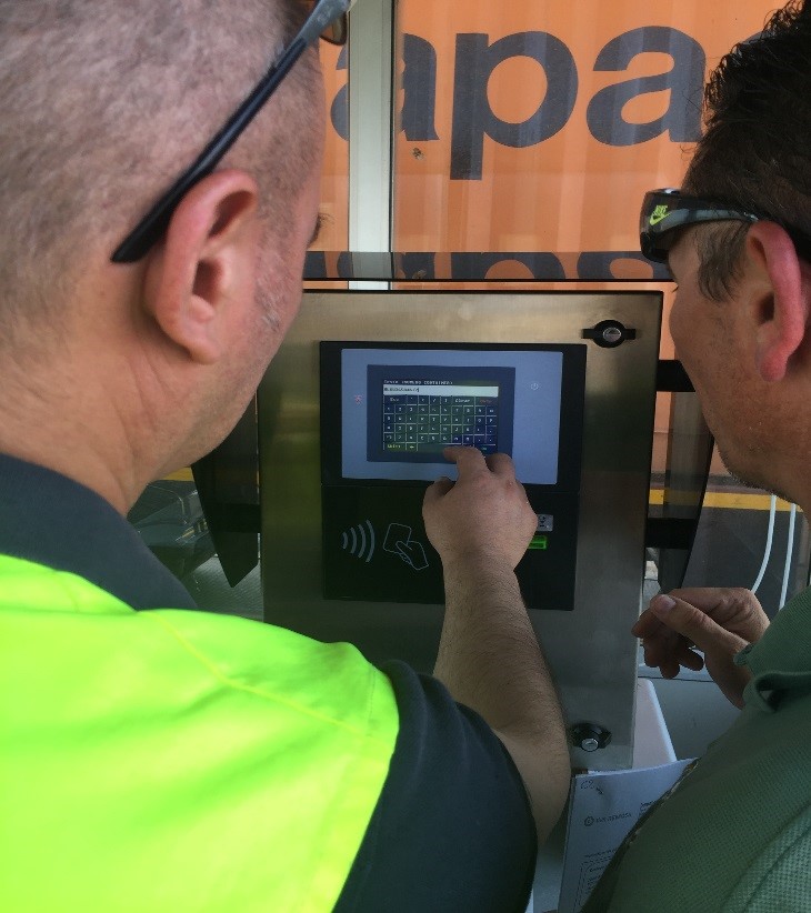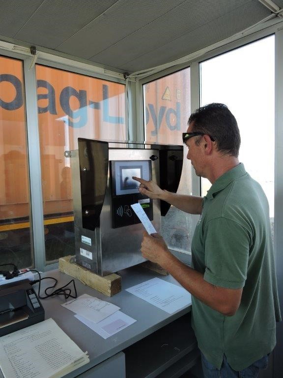 Pictured is the first container requiring weighing services, with explanations being provided directly at the receiving lane about how it all works.