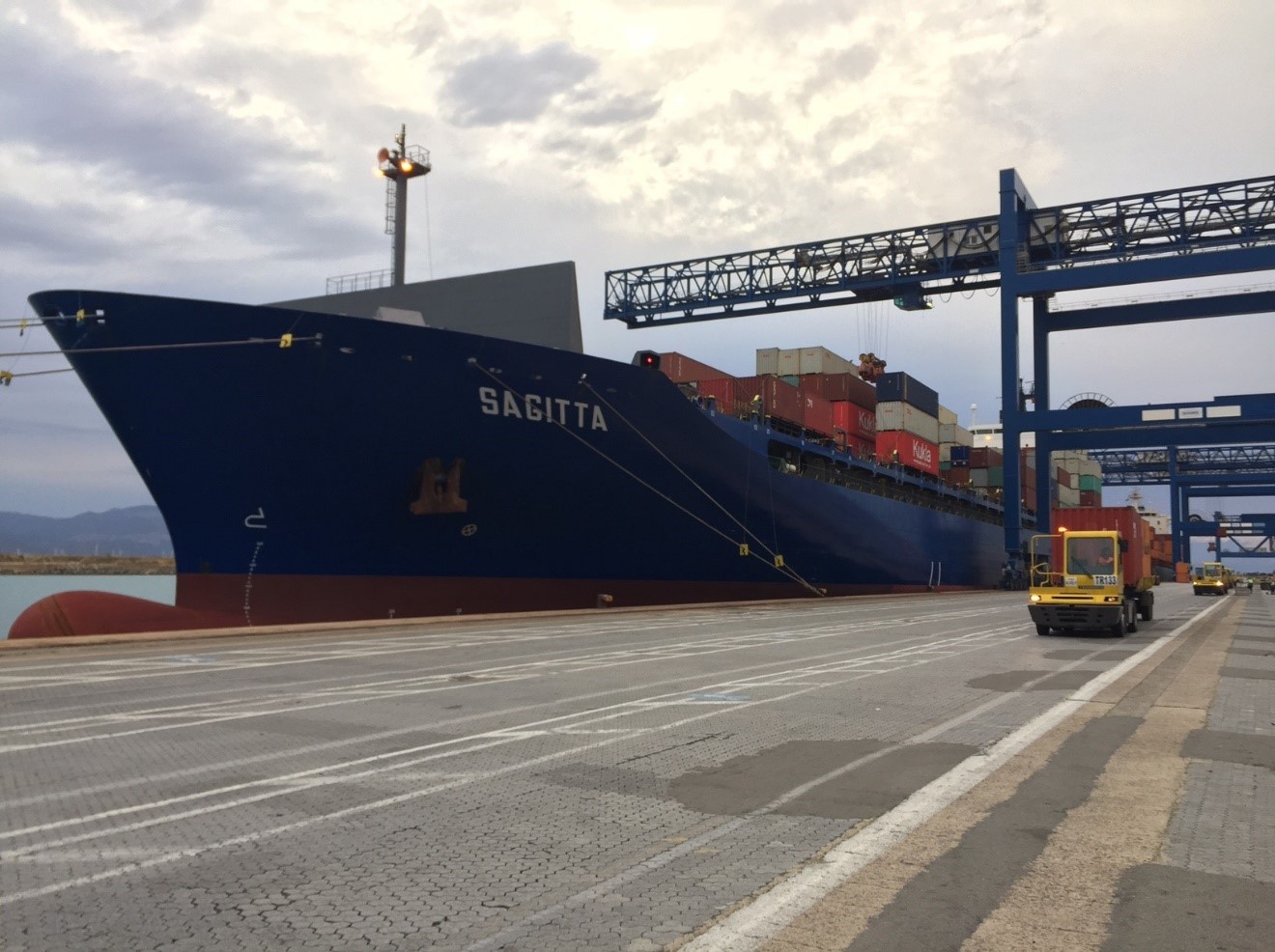 With the arrival of m/v Sagitta on Saturday June 30th, Cagliari International Container Terminal saluted the maiden voyage of the NET / EMX service, a North Europe – Mediterranean string that has now added CICT to its rotation. The service connects the Contship hub directly to Turkey, Istanbul, mainland Italy and North European ports.