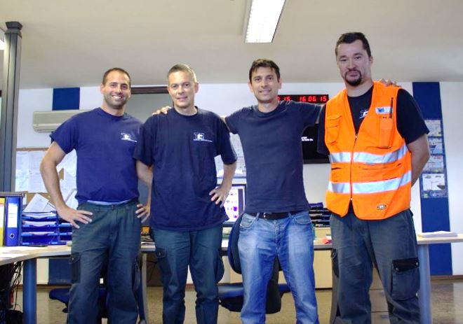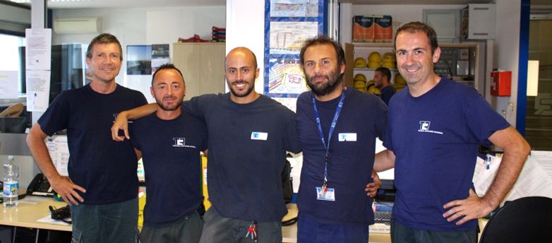 Romano’s engineers, the guys who really get their hands dirty are: Enrico, Mauro, Davide, Roberto, Maurizio, Gabriele, Vincenzo, Marco and Paolo. Being a close-knit group, the majority have been working together, like Romano since the beginning, since when both man and machinery have under-gone a transformation. “In the early days, it really was about engines, lubricants, replacement of single heavy spare parts. Today, the tasks are very much different, requiring completely different skill sets as the machines have been transformed by computer and micro-chip technology”. Each of the team has developed their own knowledge of modern technology and have retrained, naturally with the support of the company. Completing Romano’s team are: Federico, Michele and Massimiliano who ensure that TCR’s quality procedures and formal industry accreditation are fit for purpose as they require to be of the highest standard.