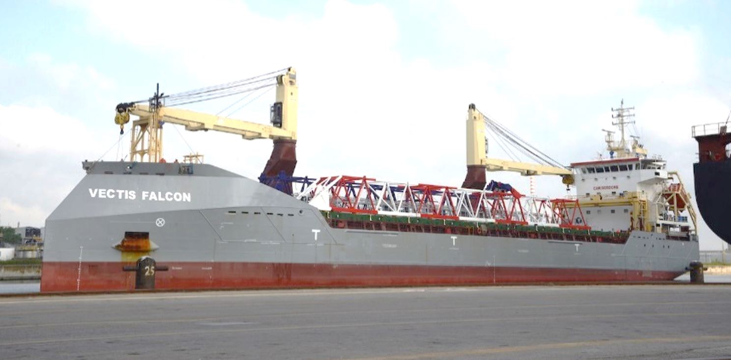 On the morning of April 24, following an eleven days journey from the port of Fenit (Ireland), m/v Vetis Falcon berthed alongside the docks of TCR, Broström Tankers AB gateway in the Adriatic Sea, carrying on board with the components of the new quay crane ordered from Irish company Liebherr last summer.