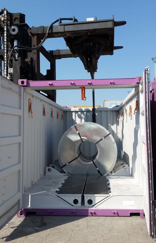 Being presented with a purpose built container that ensures a safe and secure transportation for the complete ocean voyage, TCR came up with its own bespoke solution at the terminal in devanning each steel roll and subsequently reloading to trucks to inland locations for further processing into finished goods.