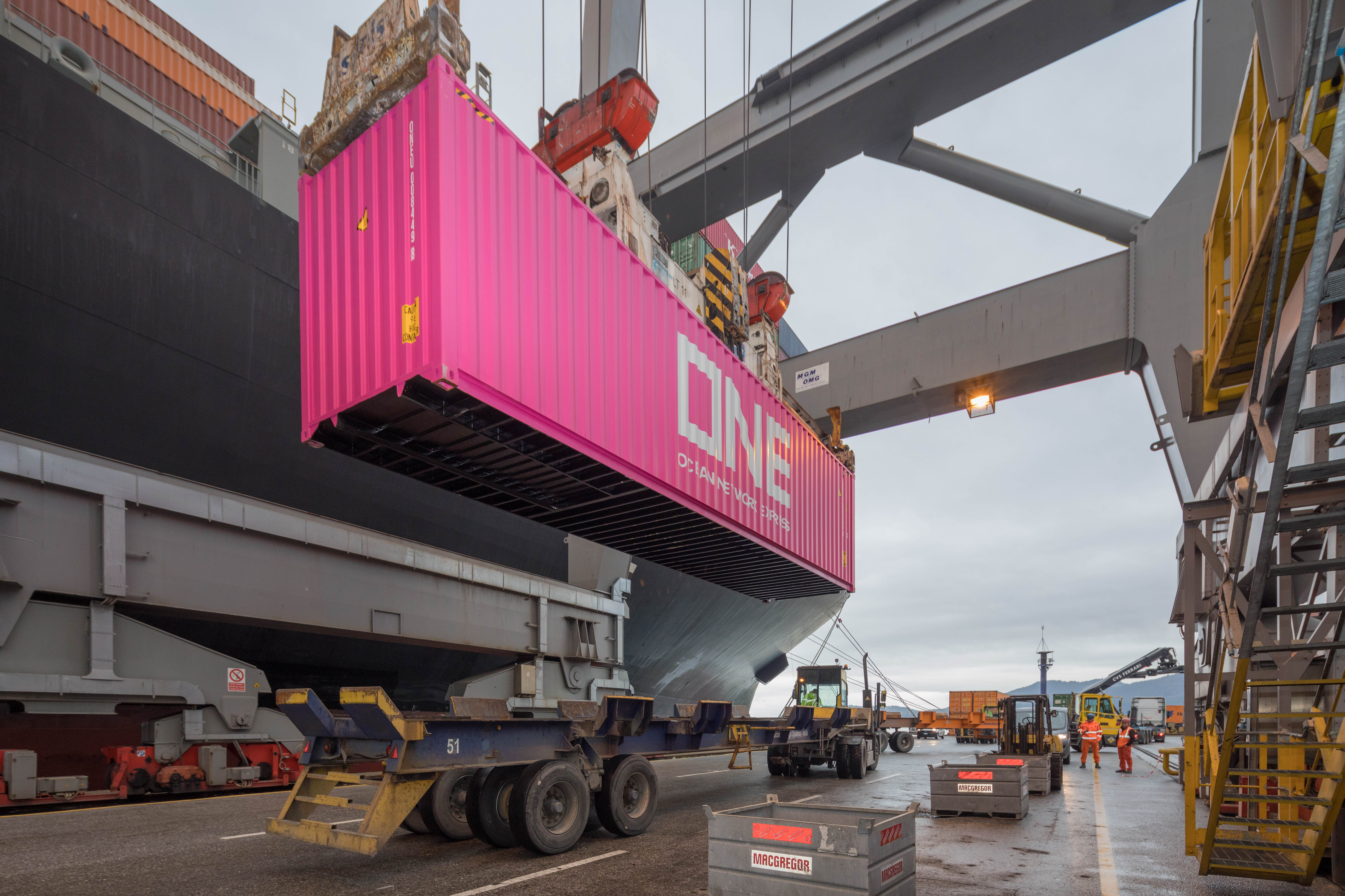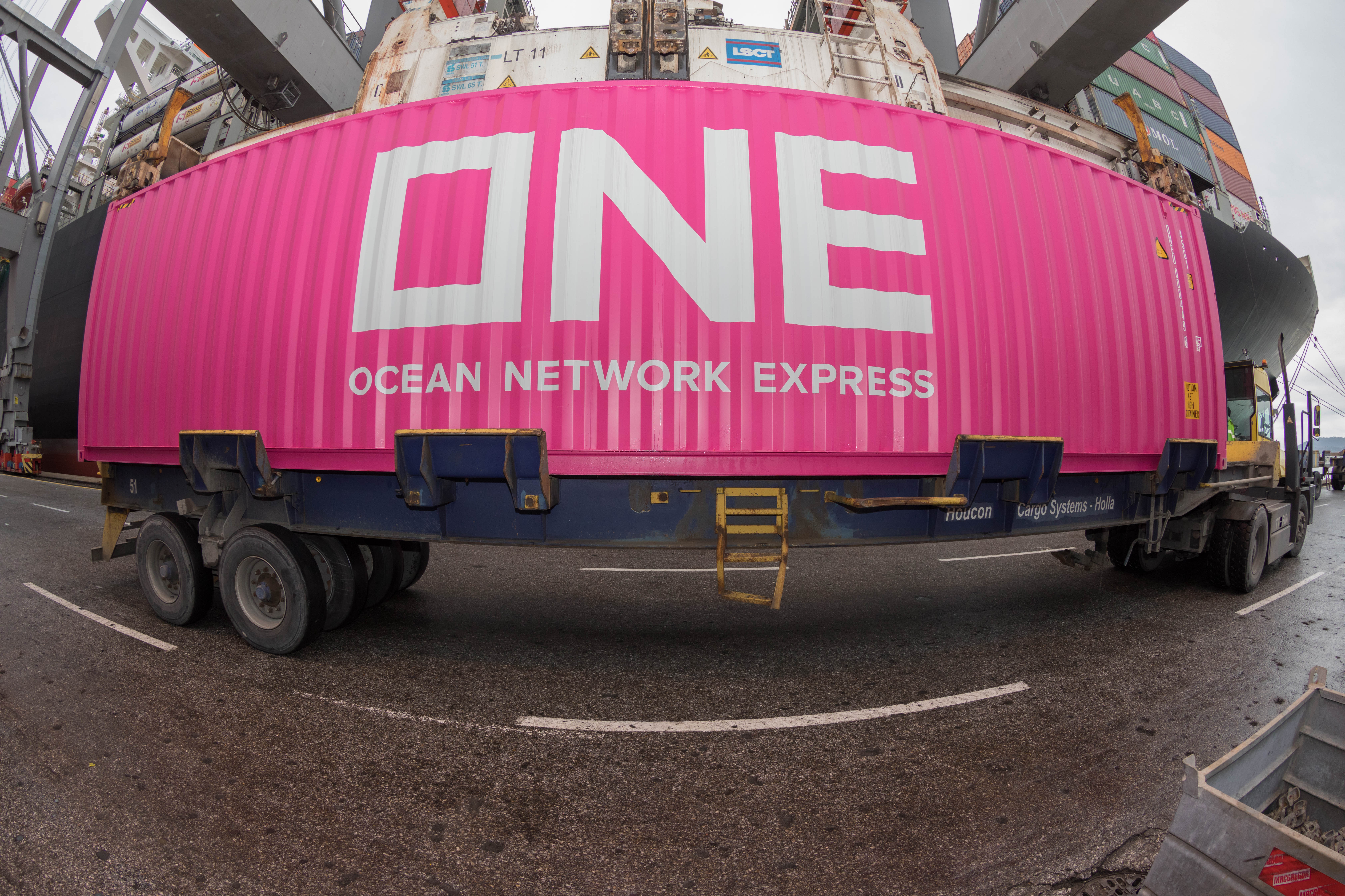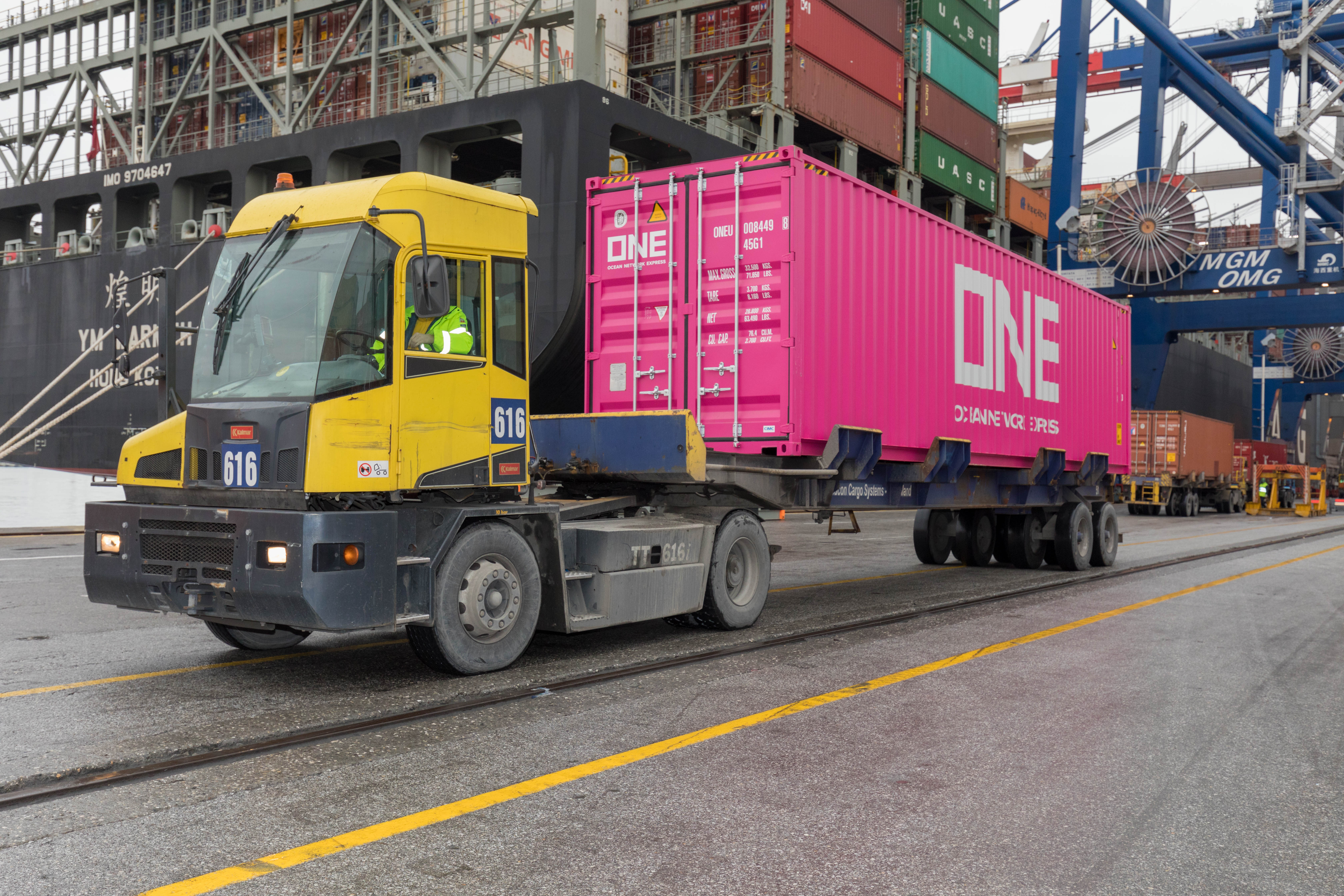 Despite the grey clouds and rain that fell over the weekend in La Spezia, the YM Warmth making only her second call brought a splash of colour to the terminal when it discharged from Asia a brand new ONE container, showing off the bright new magenta livery.