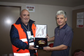 The photo below shows celebrations for the terminal’s latest maiden call – m/v Swaziland on February 9th – with ship captain Antonov Zhecho Ivanov being presented with a customized crest by terminal planner Gianfabrizio Pagan.