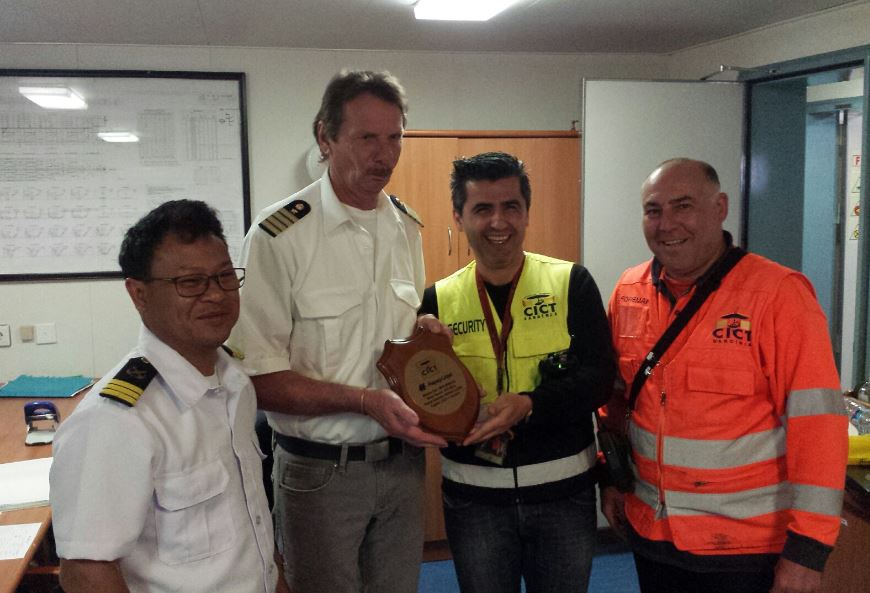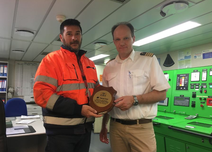 In the photos moments of operations onboard and crest deliveries to captain Klaus Meyer and chief officer Romulo Paras of m/v JPO Vela, and captain Sven Franken of m/v Bremen Express. CICT staff pictured: Francesco Serreli, Antonio Lamanna and Andrea Pontis.