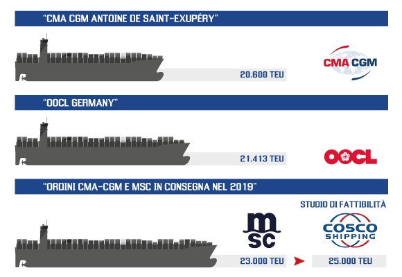 Grazie alla riduzione dei costi, le alleanze hanno permesso alle shipping lines di acquistare ed operare navi sempre più grandi – alcune con capacità superiore ai 21.000 TEU. Ma questo è solo l'inizio: sono in corso studi di fattibilità per la realizzazione di navi giganti con una capacità fino a 25.000 TEU. Mentre le dimensioni delle navi continuano a crescere, la pressione sulle infrastrutture dei terminal diventa sempre più grande, con i porti che rischiano di perdere quote rilevanti del proprio business, se non sono in grado di aggiornare rapidamente il proprio equipaggiamento.