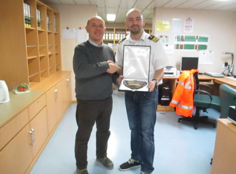 Come da tradizione, all’equipaggio, rappresentato dal Primo Ufficiale Pawel Kosk, è stato offerto un crest personalizzato dal planner LSCT Roberto Sandri, per celebrare la maiden call della Jebel Ali a La Spezia.