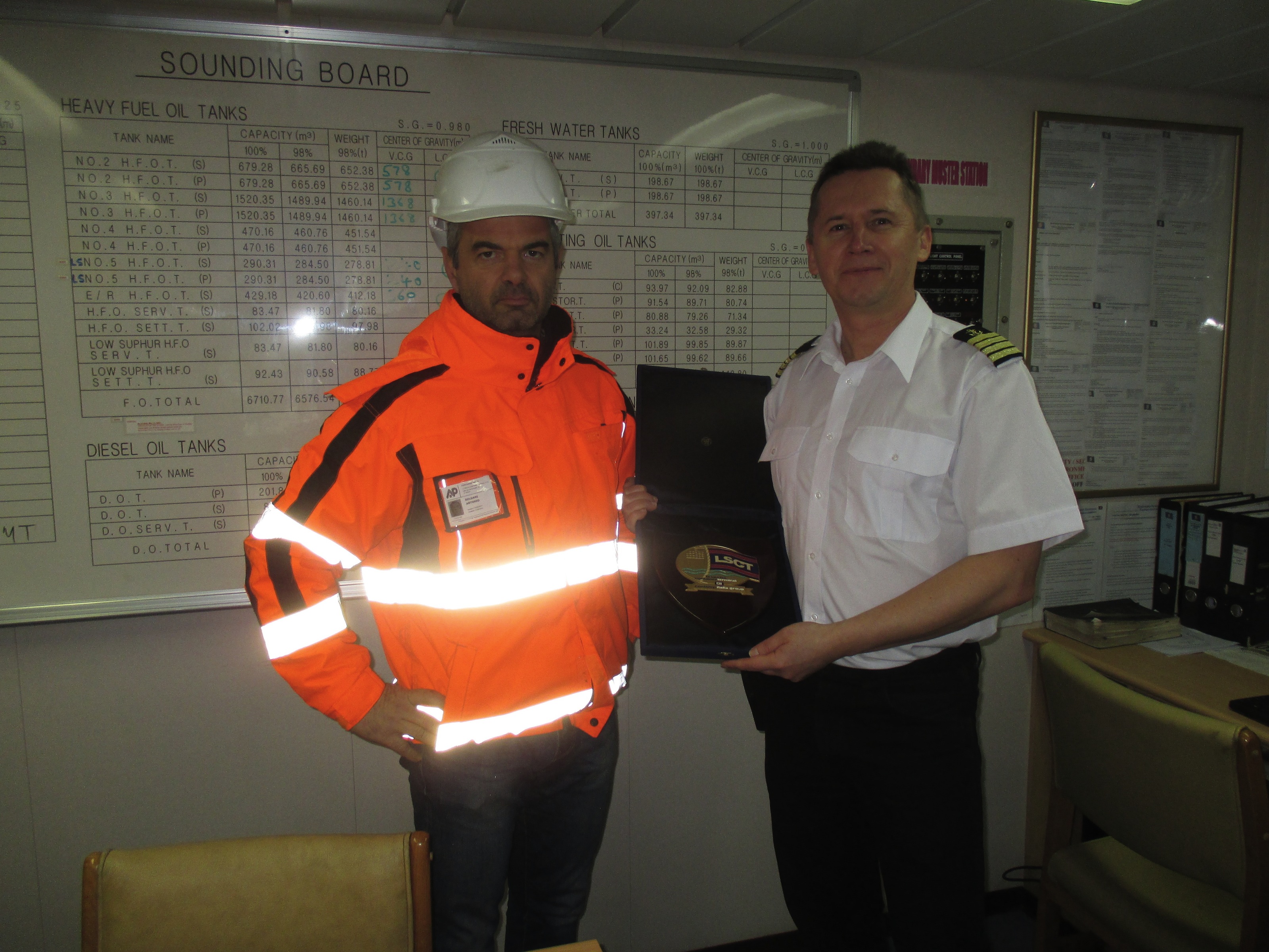 La Spezia Container Terminal ha dato il benvenuto al primo scalo della nave SCT Zurich, operata da Mediterranean Shipping Company SA (MSC) sul servizio Falcon, che collega Australia, Estremo Oriente e Sub-continente Indiano con il Mediterraneo. La nave (294.10 metri di lunghezza per 5,060 TEU di capacità nominale) è stata ormeggiata lungo il molo Fornelli Ovest, dove le squadre LSCT hanno movimentato 1,616 container ed effettuato 48 manovre di apertura e chiusura dei portelloni di stiva. Il planner LSCT Antonio Soldani – nella foto sotto – si è occupato di consegnare al Capitano Alexander Babiy e al suo equipaggio una targa personalizzata per celebrare la maiden call. La nave SCT Zurich è ripartita da La Spezia il giorno seguente.